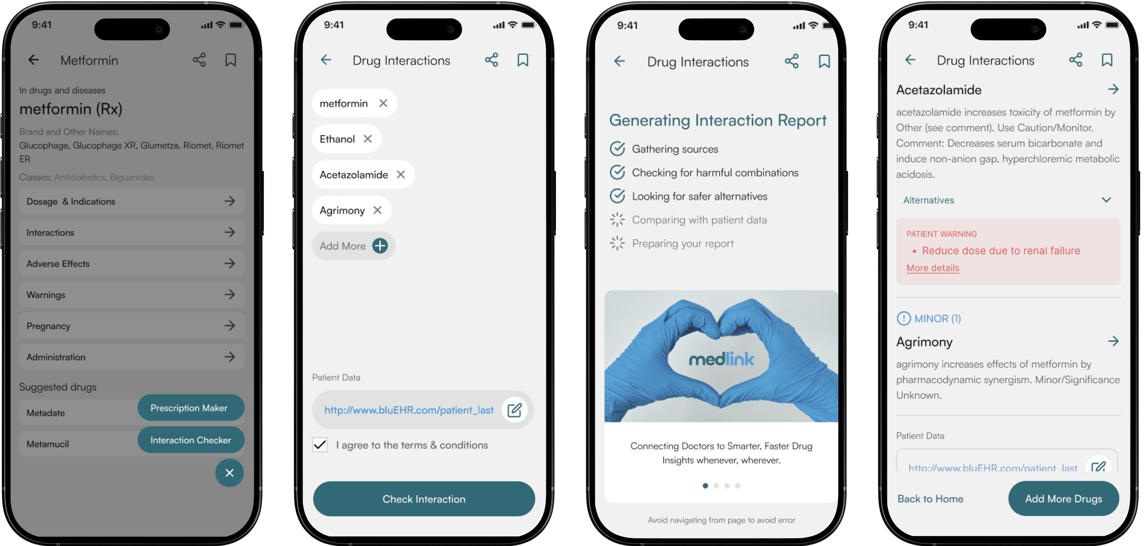 Patient-specific warnings (e.g., "Reduce dose due to renal failure").