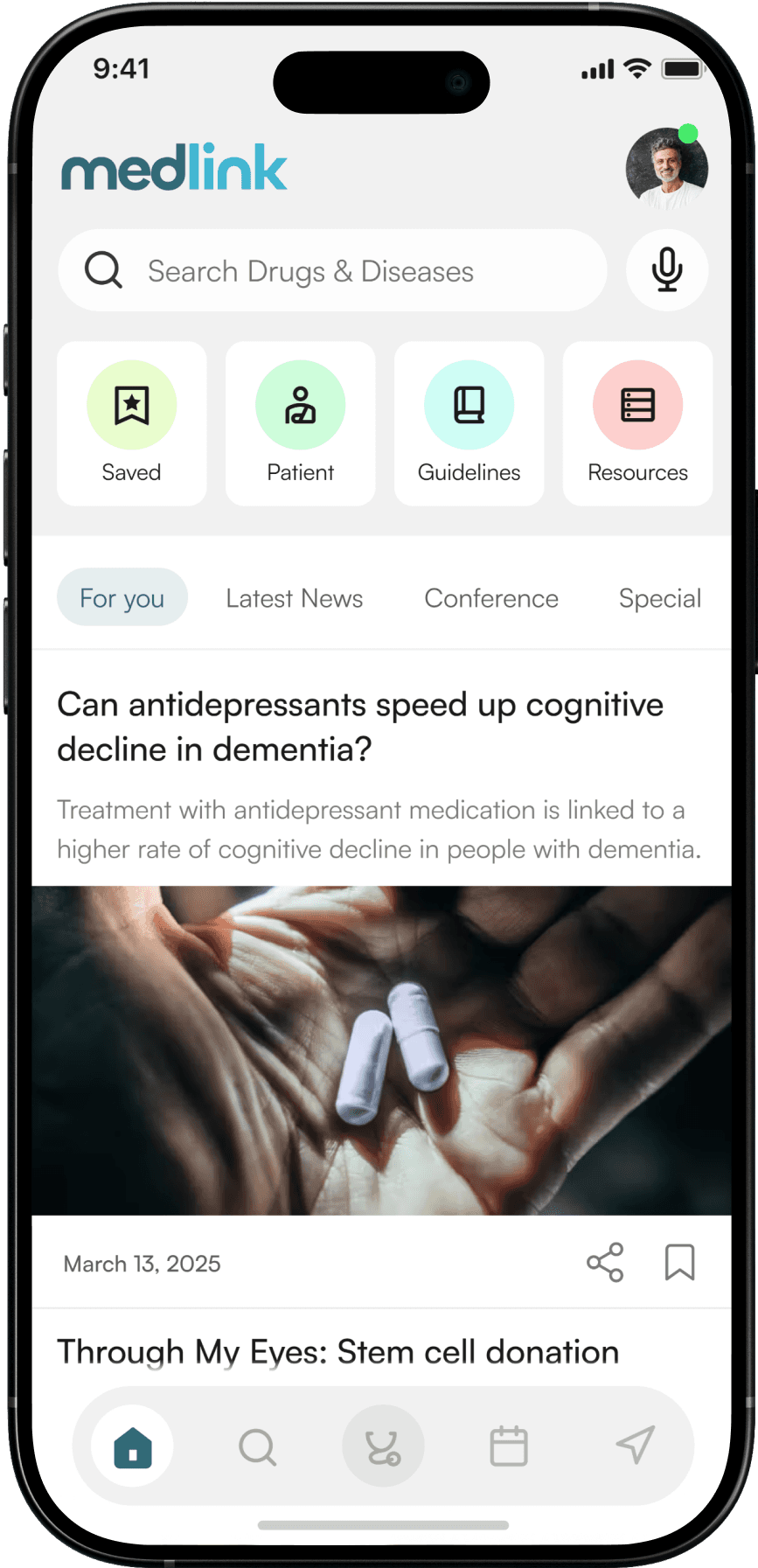 Access all important tools, relevant and personalized news, search for drug information, calendar for your appointments and chat to connect with other doctors in the community right off the bat.