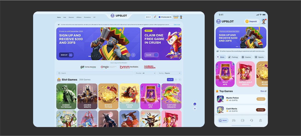 As the Lead UI Designer, I was responsible for designing the entire user interface of a large-scale online gaming platform offering real-money gameplay to international users. The platform featured a wide variety of categories, including slot games, eSports, sports betting, fishing games, and traditional board games.